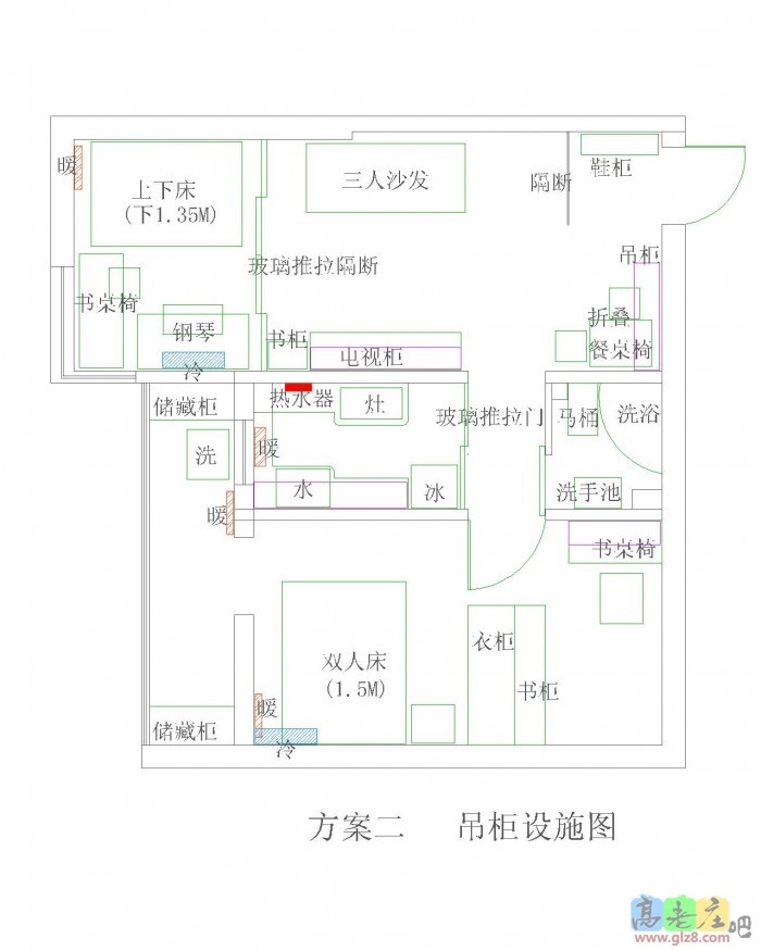 暴雪:可以做外边,但具体的能不能安装还要看你的墙体结构,可以考虑做上推拉门。推拉门要比折叠门是寿命要长一些。 灯座开关可以移到侧墙上。 (2013-12-09 10:55)